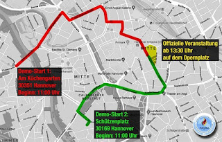 Das Fest wird daher nicht, wie vorher bekannt gegeben, ohne Demonstration auf dem Expo-Plaza-Gelände stattfinden. Der Start für die Demonstration für Teilnehmer aus Nord- und Ostdeutschland wird die Fössestraße (Roter Demonstrationszug) sein. Für Teilnehmer aus West- und Süddeutschland beginnt die Demonstration auf dem Schützenplatz (Grüner Demonstrationszug). Ab 9.30 Uhr werden die Teilnehmer erwartet. Planmäßiger Beginn der Demonstrationszüge ist um 12.30 Uhr. Die Demonstration soll um 13.30 Uhr auf dem Opernplatz enden, auf dem auch die Abschlusskundgebung mit Grußworten von Vertreter*innen verschiedener zivilgesellschaftlicher Organisationen und politischer Parteien, wie der Ko-Vorsitzenden der HDP, Pervin Buldan, stattfinden wird. Ende der Abschlusskundgebung ist um 17.00 Uhr.