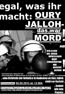 Wie jedes Jahr fand auch am 07.01.2012 eine Demonstration in Gedenken an Oury Jalloh in Dessau statt: http://www.youtube.com/watch?v=pHM5zgjkxAE